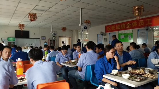 為了讓大家都真切感受到來自公司的關(guān)懷,總經(jīng)辦行政科的同事進(jìn)行了用心的安排,讓今天的員工食堂洋溢著熱鬧祥和的節(jié)日氣氛。每個人一進(jìn)入食堂就領(lǐng)到了月餅和水果,每張用餐的餐桌上都擺放了飲料和花生瓜子等供大家隨意品嘗;另外今天的菜式也更加的豐富美味。大家感受到這一切用心的安排,每個人臉上都掛滿了笑容。大家吃著這獨(dú)特的節(jié)日佳肴,一邊開心的暢談著假日的打算,完全像一個溫馨的大家庭一樣。